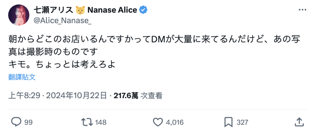 Similarly, Alice Nanase faced criticism for calling the situation “gross” (using the word “キモ”, meaning disgusting). Some people responded, saying, “Isn’t the actor more disgusting?” Others suggested that if you asked ordinary women who was more disgusting—someone who works in AV or someone who mocks AV actresses—the answer would likely be the same. Some even believe that AV actresses are more prone to outbursts because they are fully aware of the strange nature of their work.